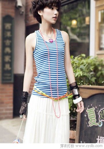 07 想像公主一样美丽浪漫,像天使一样梦幻纯洁,既然不是结婚,当然不能穿着婚纱上街出行,还是让白纱裙来实现这一梦想。及踝的长度、轻盈的质地,在步履替换件都带着股仙气。巧妙的用蓝白条纹水手装背心来接接地气,是大胆又时尚的韩范儿风格哟!