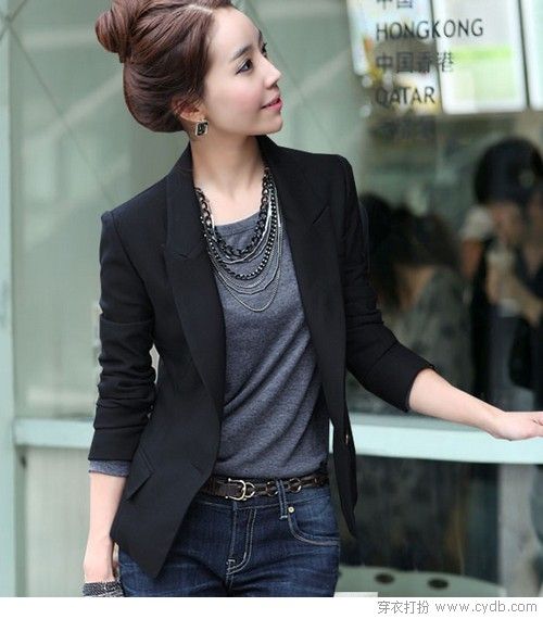 05 上班、逛街、旅行……要想hold住各种场合,一件黑色小西装也值得你考虑,短小精悍,轻轻松松打造干练的OL形象,虽说黑色庄严稳重,但有了收腰设计,凸显杨柳腰肢,削弱了中性化的味道。